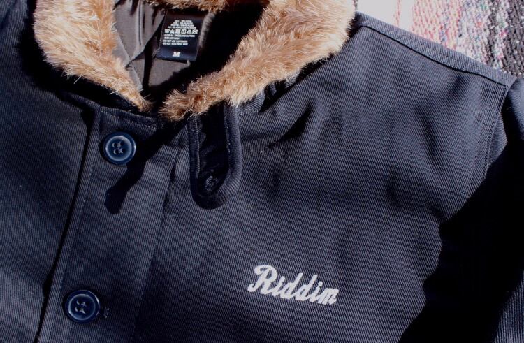 左胸にクラシカルなRiddimの刺繍を。